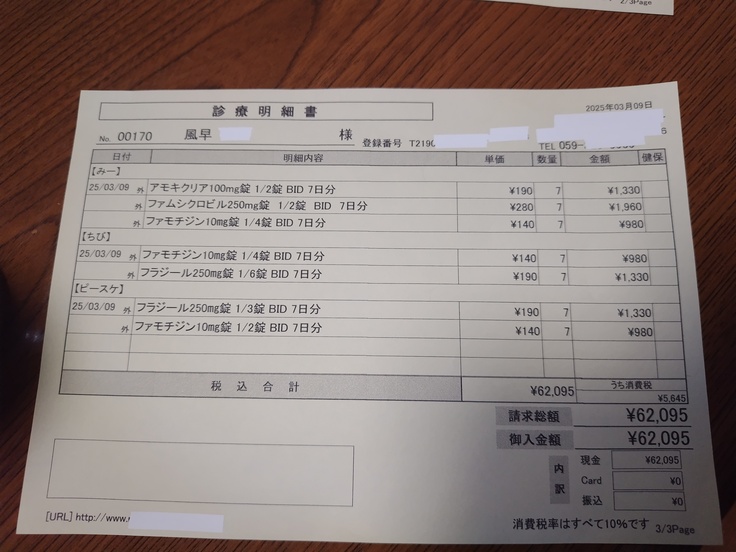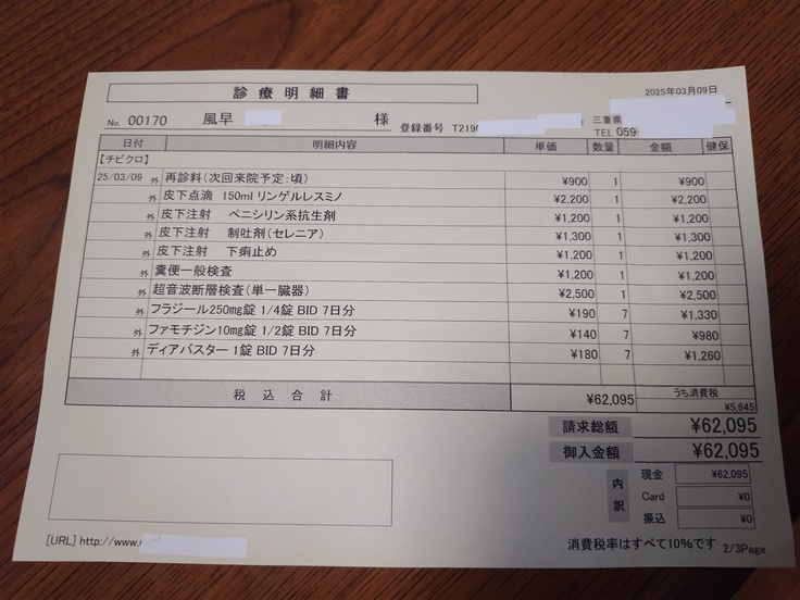 金曜日に、血便などの症状がありました、チビクロちゃんも一緒に診察して頂きました👍