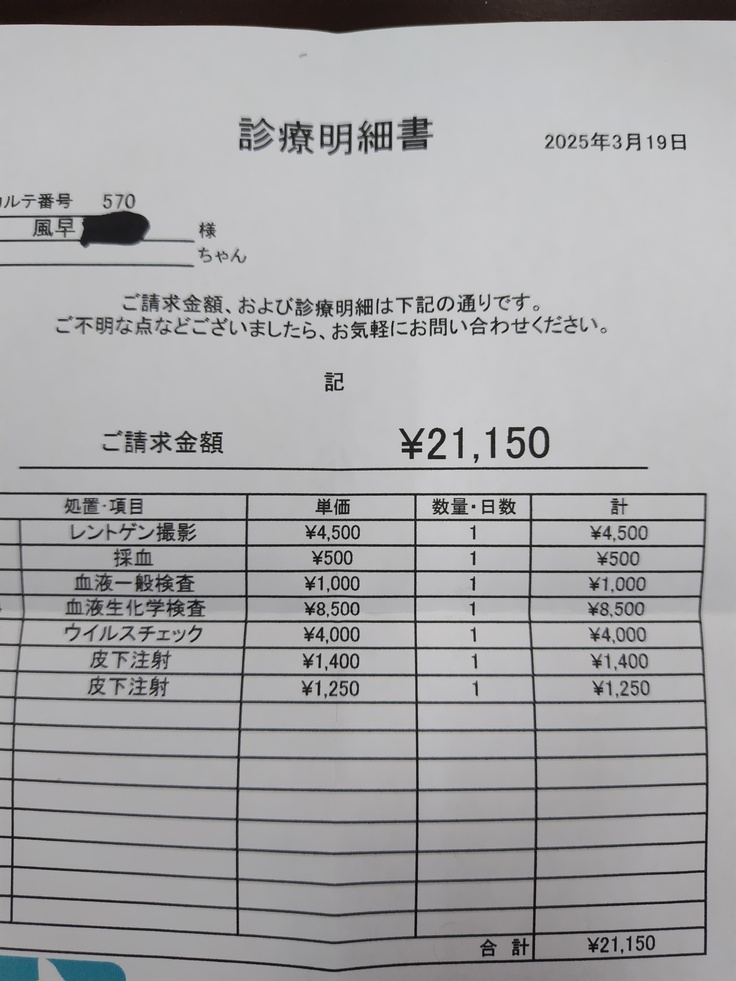血液検査もして貰いました😰結果は、明日の朝です😰体温が低いので、貧血!?