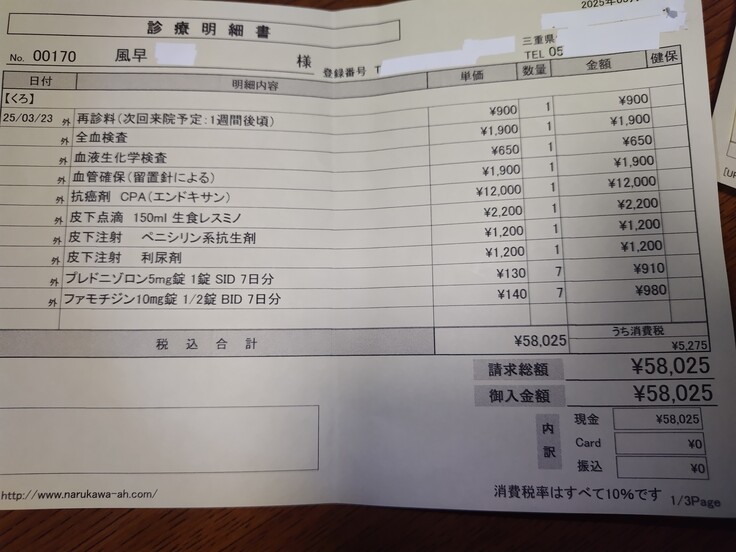 おかかちゃんは、胸水を抜いて頂きました😰