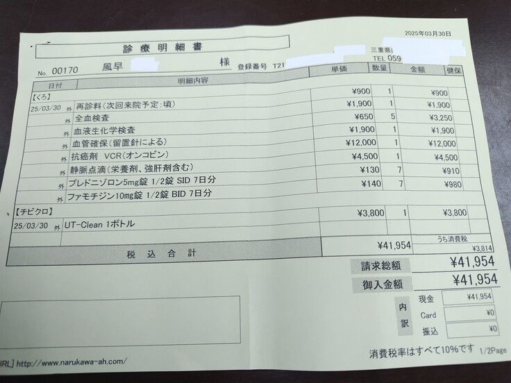 抗がん剤治療を出来る結果でしたので、抗がん剤治療をして頂きました😃