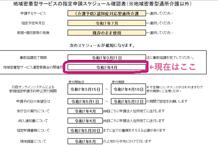 現在、大阪市福祉局に事前協議書類を提出し協議がされている段階です。