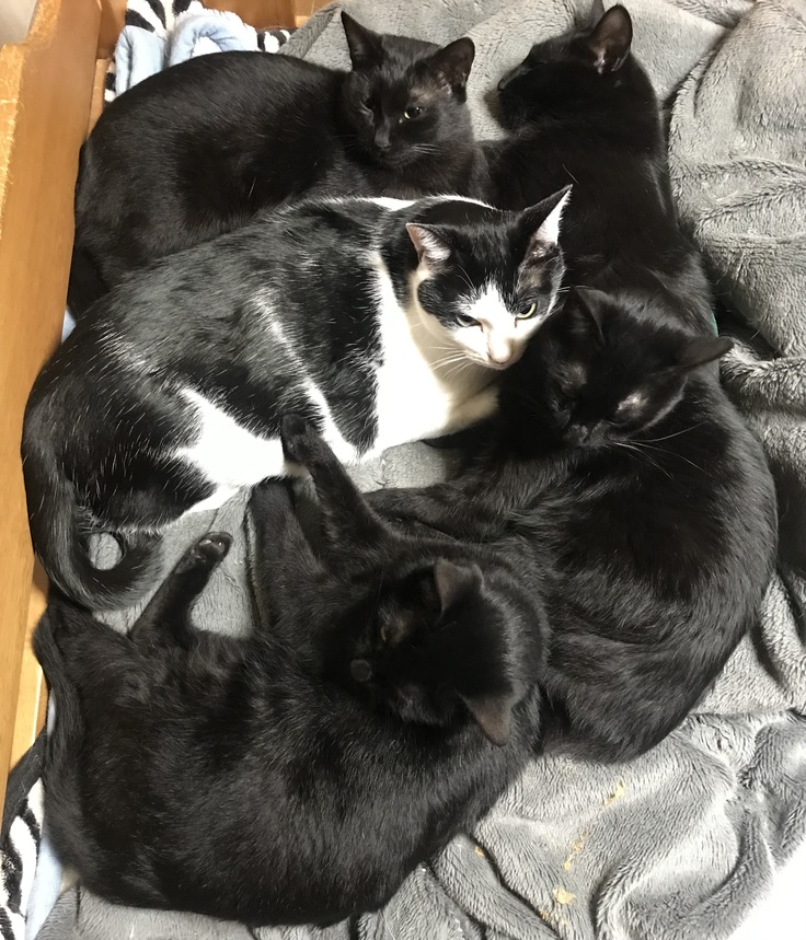 特にチビクロ軍団から好かれていて、寝る時も行動する時も、常に誰かしら一緒にいます。