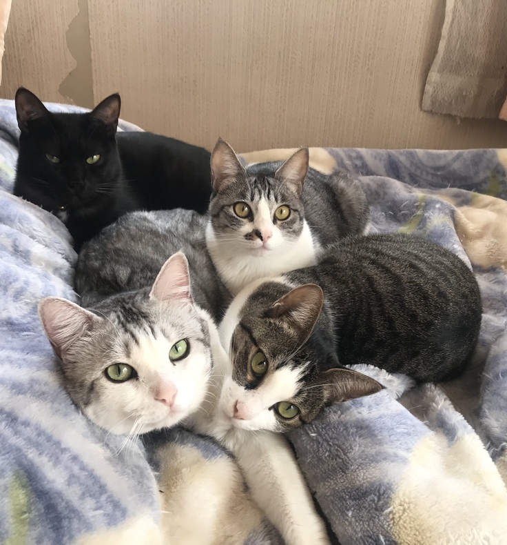 最近は、チビクロ軍団や三世と仲が悪く、特にチビクロ軍団とは顔を合わせるだけで、喧嘩する事が増えた為、できる限り別にして、私と寝る順番も別々にしています。いない時に大喧嘩してる雰囲気はないので、そうならない事を祈っています。
