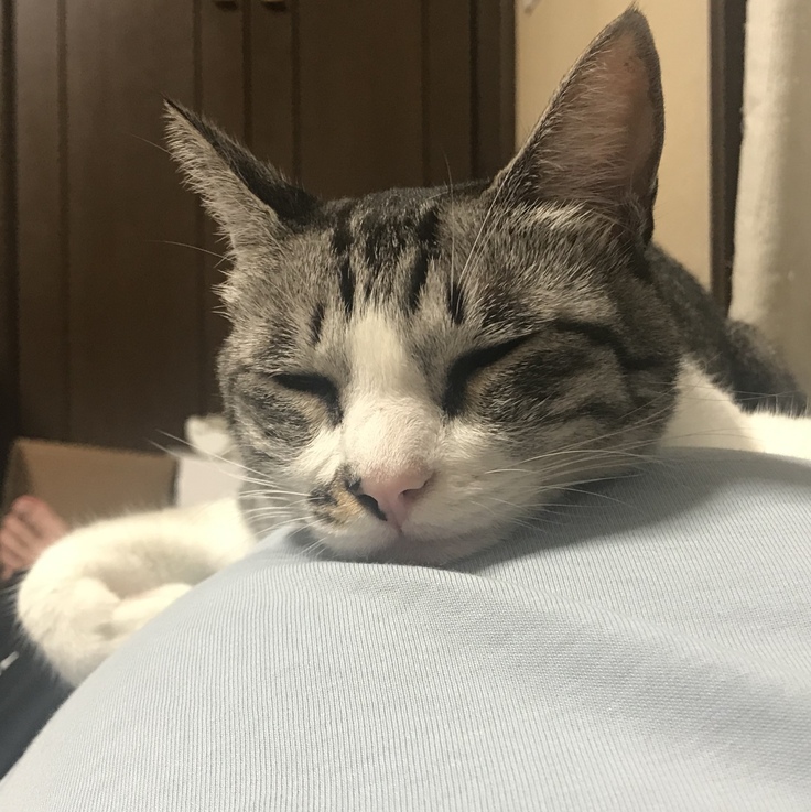 ↓私のお腹の上で寝る二世