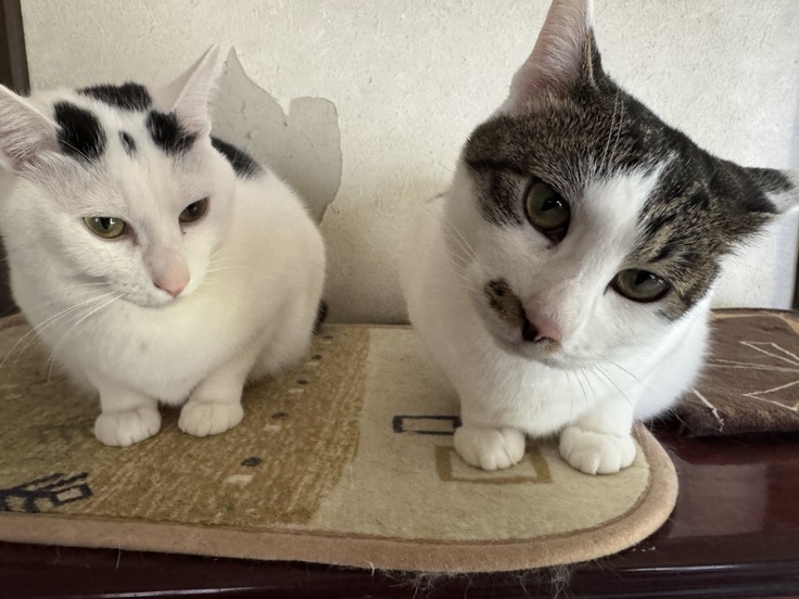 べーちゃんが名前の由来が牛🐮だったので、白色の猫がべーちゃんとメーちゃんの2匹だったので、じゃあ羊🐑でメーちゃんにしようという事になりました。