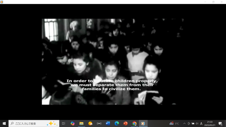 2.2. スウェーデン在住でカナダの先住民族にルーツをもつアントニー・フランク・グラハムズドーター(https://www.antoniefrank.se/)は、マルチメディア・アーティストとジャーナリストという二つの異なる立場から、先住民女性への暴力を告発するとともに、その強さをインタビューや映像によって描き出し、人種的ステレオタイプの固定化に挑戦してきました。2016年には、1970-80年代以来の先駆的な功績が高く評価され、影響力のある欧州の女性ビデオアーティスト(EWVA)の一人に選ばれました。アントニーのドキュメンタリーは、スウェーデン、カナダを中心に、オランダ、イタリア、イギリスなどの映画祭でも上映され、強烈な印象を与えてきました。なお、アントニーは、沖縄にはすでに二度訪れ、植民地主義や軍国主義の下でのジェンダー抑圧の実態を浮き彫りにする反面、琉球民族の復元する力にも光を当てた写真や映像をスウェーデンやデンマークで発表しました。なぜまた沖縄に戻るのかというと、アントニーは沖縄の植物、虫の鳴き声、海、空気、建物などすべてが長年家族と過ごしたギリシャによく似ていて、沖縄が大好きだからです。以下の四枚の写真は、カナダのイヌイットの過酷な寄宿舎生活の一部とそれを体験した長老のインタビューからなるフィルムWhite Washの場面をスクリーンショットしたものです。