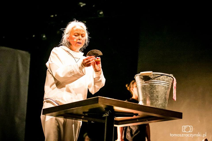 2-3. ポーランドのグダンスク出身の女性劇団、アマレヤ劇団(https://www.teatramareya.pl/)は、2014年、グリーンランド・イヌイットの女性ルイース・フォンテインがデンマークによる同化政策によって母語を奪われ、アイデンティティを失ってさまよう実話をもとに「Nomadic Woman(流浪の女)を発表し、欧州の人々に衝撃を与えました。それは、音楽、映像に加え、日本の舞踏をベースにした創造的パーフォーマンスによって、グリーンランドという辺境の地の埋もれた植民地化の歴史にアートの光を照らしたものです。アマレヤは、2018年から22年までの間に北海道に定期的に訪れ、アイヌ女性と「アイヌとカムイのためのレクイエム」などの新作を毎年初演し、アイヌ文化の可能性を広げました。今回は、イヌイット女性アーティストのルイース・フォンテインとトランスジェンダーアーティストのアパヤック・レイタンのコンセプトに基づき、カタジナ・パスツァックとナタリア・チリンスカが振り付けた新作「UNA」を沖縄で初演しようと意気込んでいます。カタジナによれば、「UNA」は、イヌイットのイヌア(本質)やシラ(精神、環境)といった概念を用いた儀式的なアートによって失われた伝統を取り戻し、女性的な力を目覚めさせることにより、男尊女卑、資本主義、植民地主義の下での不正義に対する変革と抵抗を呼びかけるとのことですが、どのような作品になるのか、楽しみです。なお、カタジナは日本の舞踏(Butoh)の創始者、土方巽の研究でグダンスク大学から博士号を授与しています。以下の3枚の写真は「Nomadic Woman」からです。