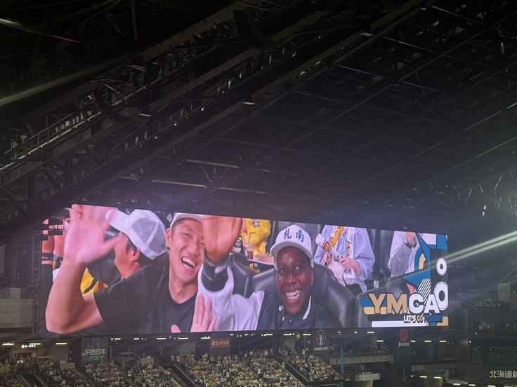 四日目、アルファ選手にとって生涯初のプロ野球観戦となる一日でした。エスコンフィールドの熱気に包まれながら、目を輝かせて試合展開を追い、プレーの一つひとつを真剣に観察していました。イニング間には、「タンザニアから来ましたタオル」を掲げるアルファ選手の姿が、球場の大型ビジョンに映し出され、温かい拍手と大歓声が送られました。