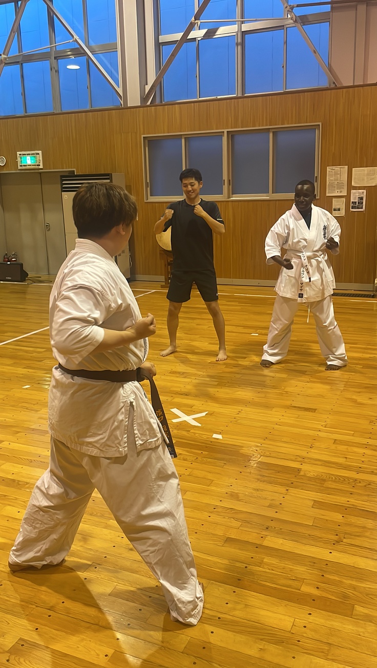 午後は、野球部OBによる空手教室に参加。「アルファ・マイサ」と刺繍された真新しい道着に身を包み、大好きなドラゴンボールの主人公・孫悟空を目指して、熱心に技を習得しようとしました。