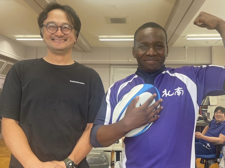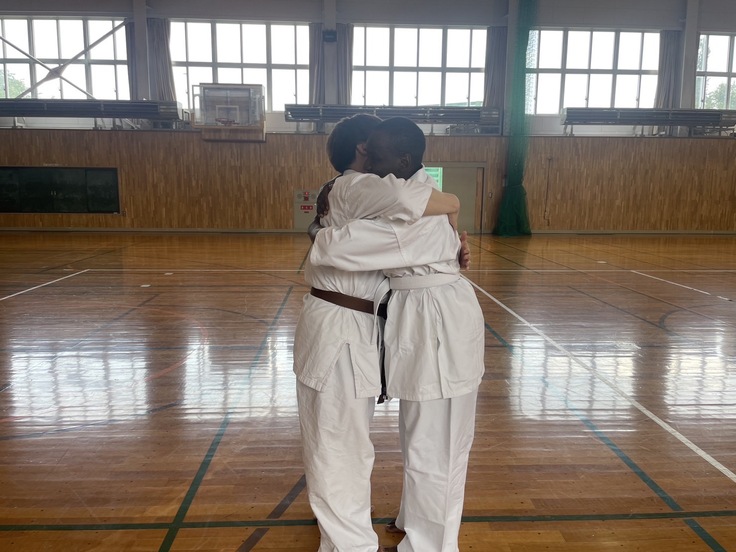 たくさんの別れもある中、アルファ選手が夢中になった空手道場では、最後の稽古にて先生との熱い抱擁が交わされました。ラグビー部からは、リーチマイケル選手になれと言わんばかりの、ユニフォームとラグビーボールが贈られ、1ヶ月で筋量を5キロ以上増加させた、毎日のトレーニングにも最後の最後まで励みます。
