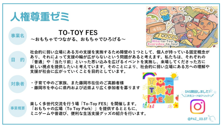 「人権尊重ゼミ」が企画するTO-TOY FESをご案内いたします。