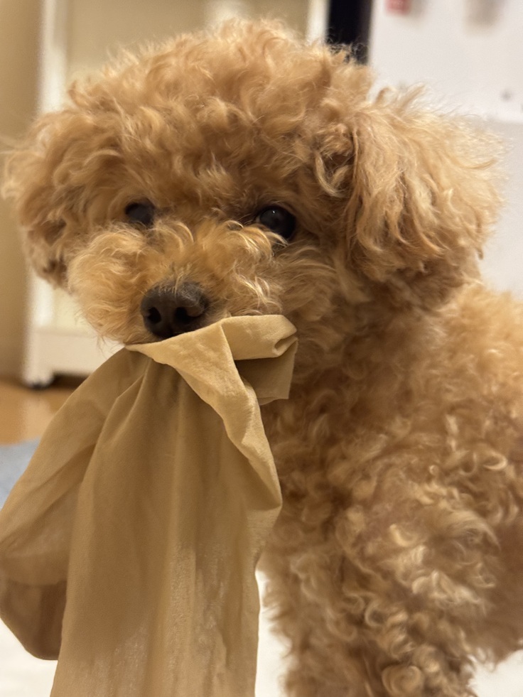写真は昨夜ママがお仕事から帰ってきた時ママの履いている大好きなストッキングを振り回してる写真です😅