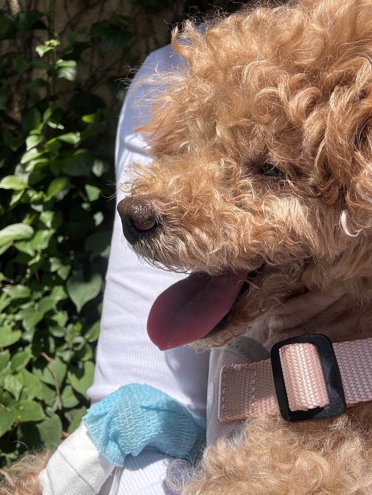 今日とても天気が良かったのでレイちゃんと病院の近くを気分転換に抱っこしながらお散歩