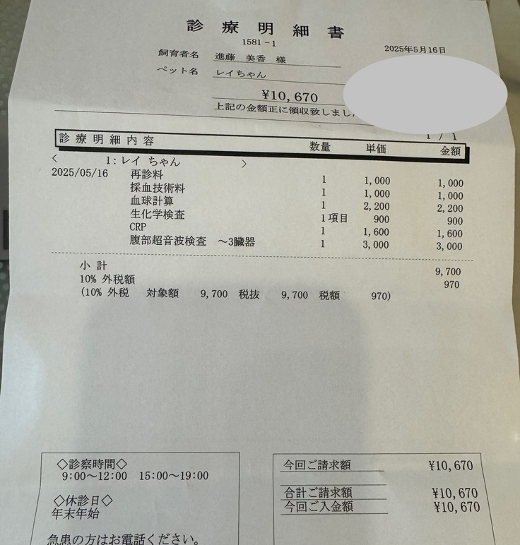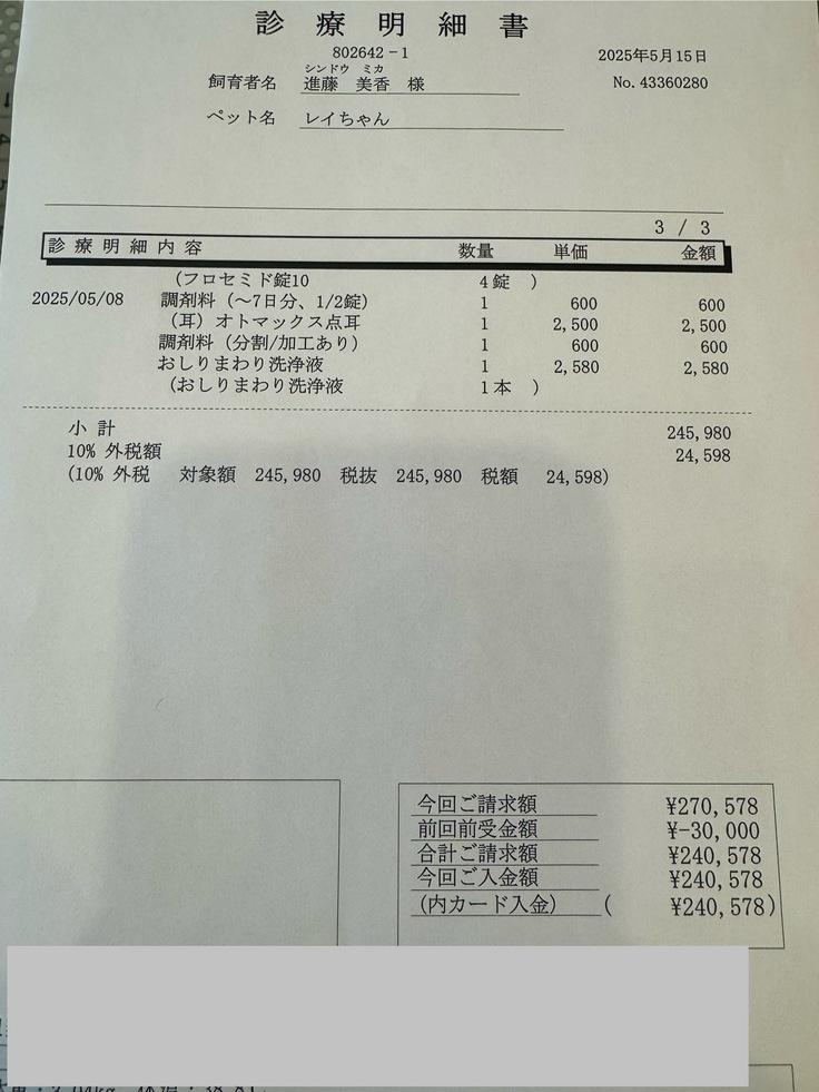 昨日再々入院の費用を支払ってきました。(2枚目)