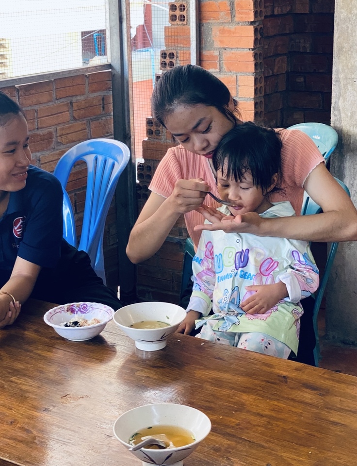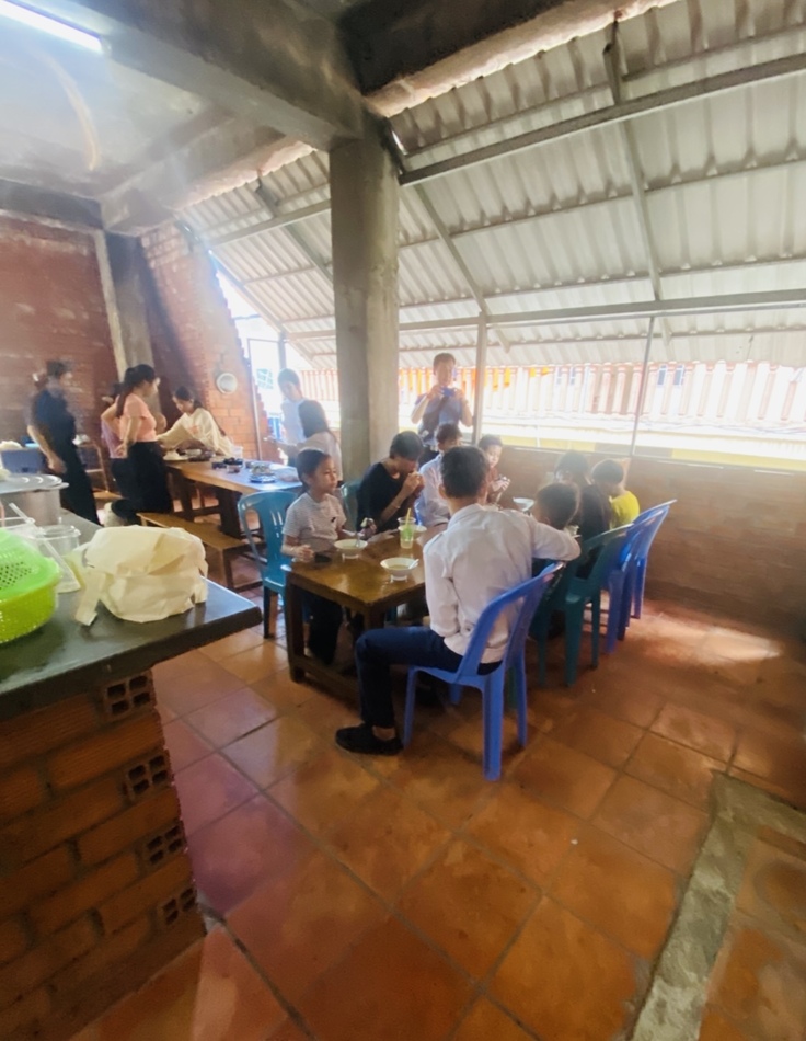 先生方やお姉さんたちが、早い時間から手伝ってくださいました。日本語、英語、クメール語が飛び交います。