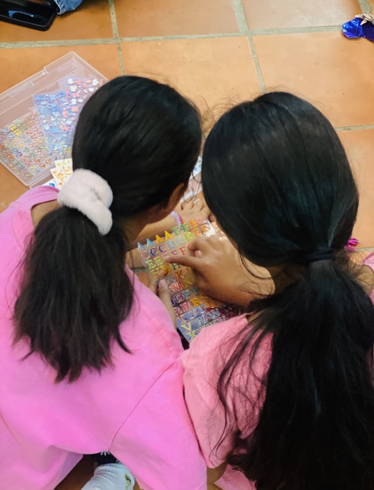 日本語シールで自分のお名前と、大好きなお父さんお母さんのことも貼れたね。