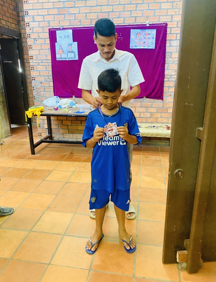 展示会場にお名前を書いて掲載いたします。掲載可能は文字は、日本語、クメール語、ローマ字、記号10文字までです。企業名、屋号、ニックネーム、イニシャルも可能です。