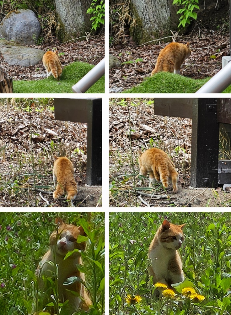 近寄ると逃げてしまうので急いでご飯を持って行くと裏のウッドデッキの近くにおりましたが高さがあり餌の置いてあるところへはあがれない。ウッドデッキの下へ置いてあげました。風が強いせいか直ぐに匂いに気付いて...