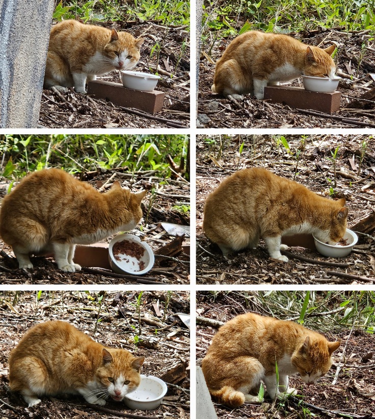 外猫ちゃんが来ました。歩き方が…よく見ると左後ろ足が小さくぶら下がっておりました。
