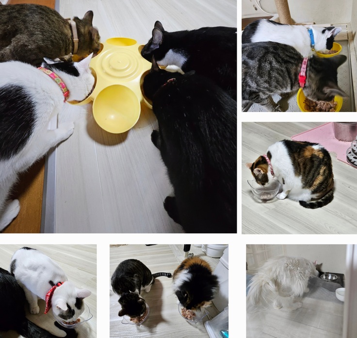 休憩しながらでも猫たちのお世話は笑顔で頑張っております。