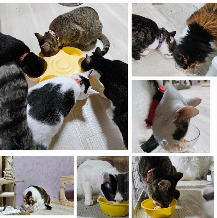 最近のずっと1人で離れて食べていたカルアちゃん、元々他の猫たちが来ると譲ってしまう