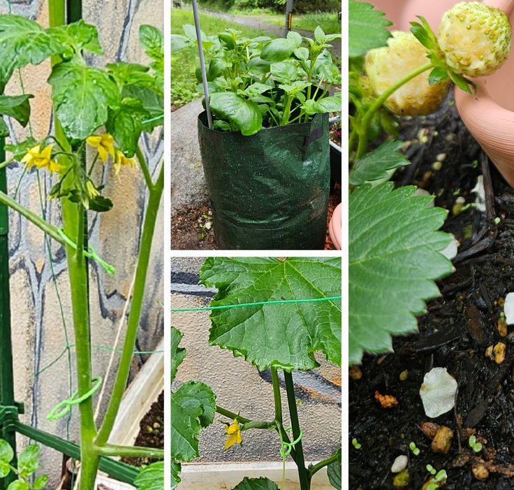 お庭のトマト、キュウリ、じゃがいもの成長は順調です!