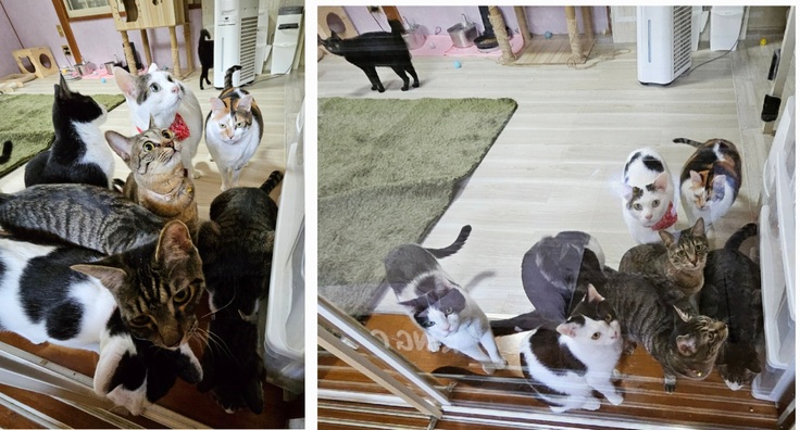 はじめはのんびり近づいて…気づいたとたんに✨🎁✨のチュールに集合…