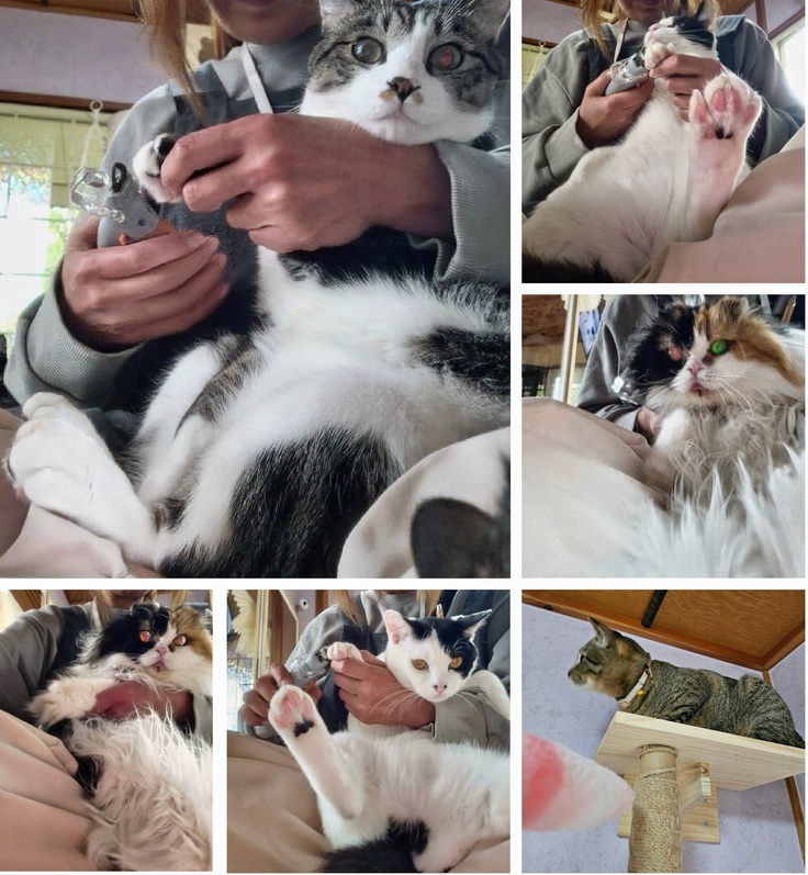 みんなにごほうびチュールの時降りてきたので、しっかり爪切りしました。