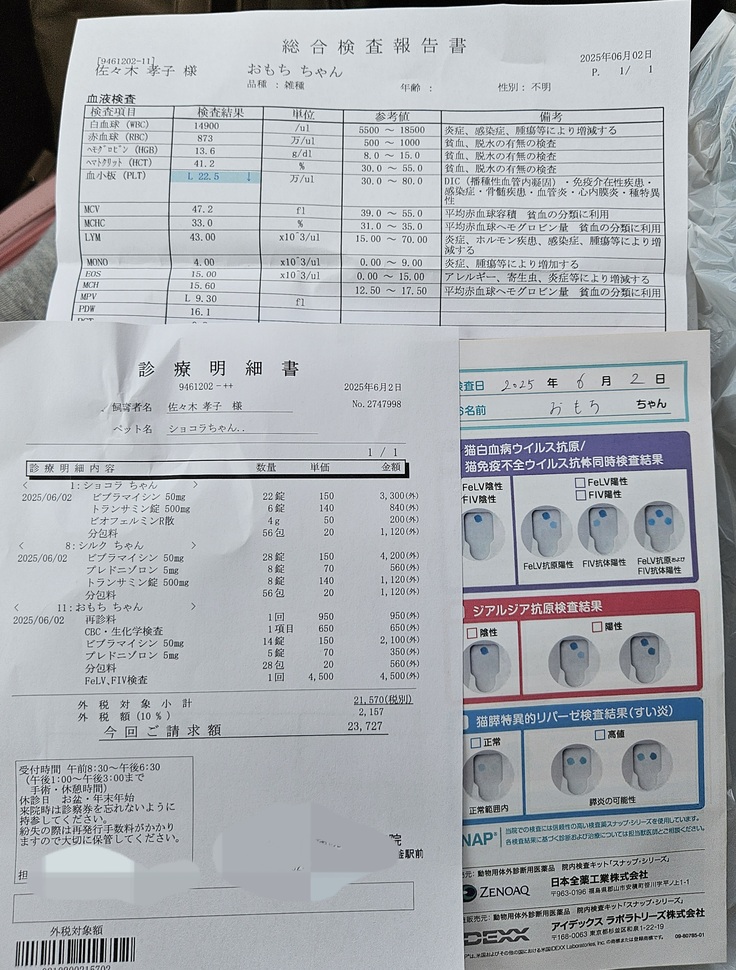 シルクくん、ショコラちゃんのお薬もお願いしたので今日の医療費は23,727円でした!