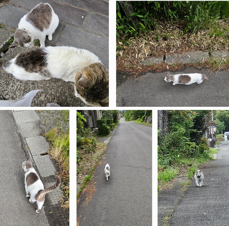 ずっと後をついてきた猫ちゃんは首輪をしていました。