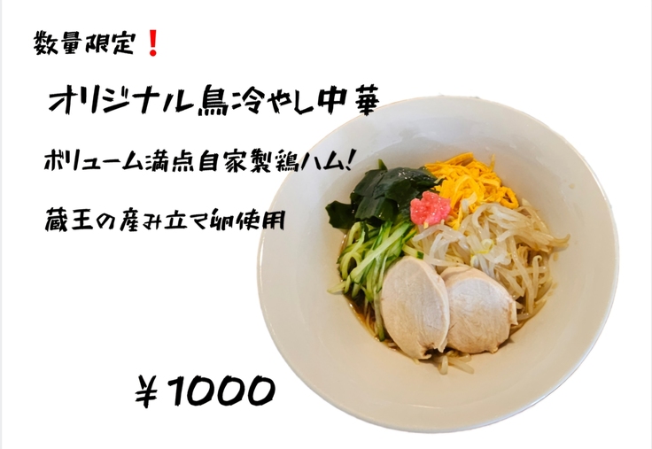 さっぱりしたものが食べたいとおっしゃったので自家製トリハムを載せた冷やし中華をおすすめすると、喜んでくれました。プラスアイスコーヒー