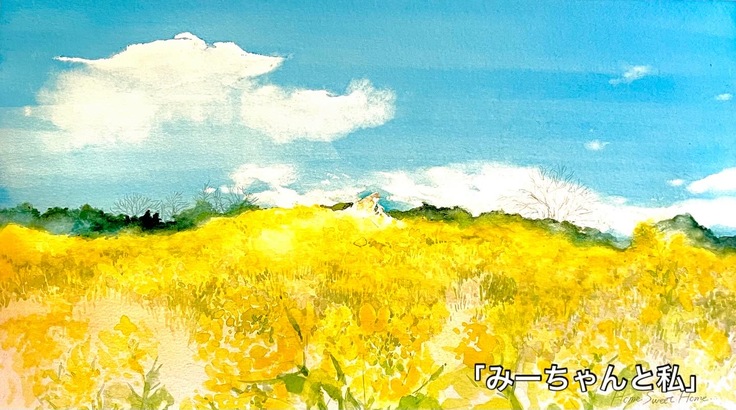 菜の花畑に行った時に友達が撮ってくれた写真をもとに描きました🎨🖌️