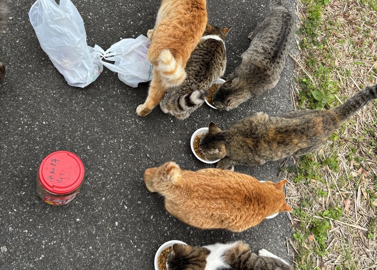 地域猫達ご飯モリモリ食べて、過酷な環境を