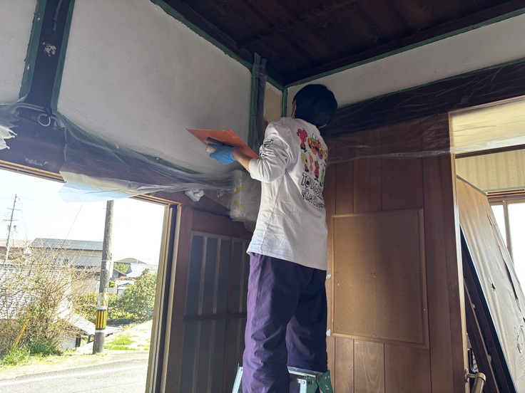 灰色のどよんだ土壁を漆喰で、明るい色へと