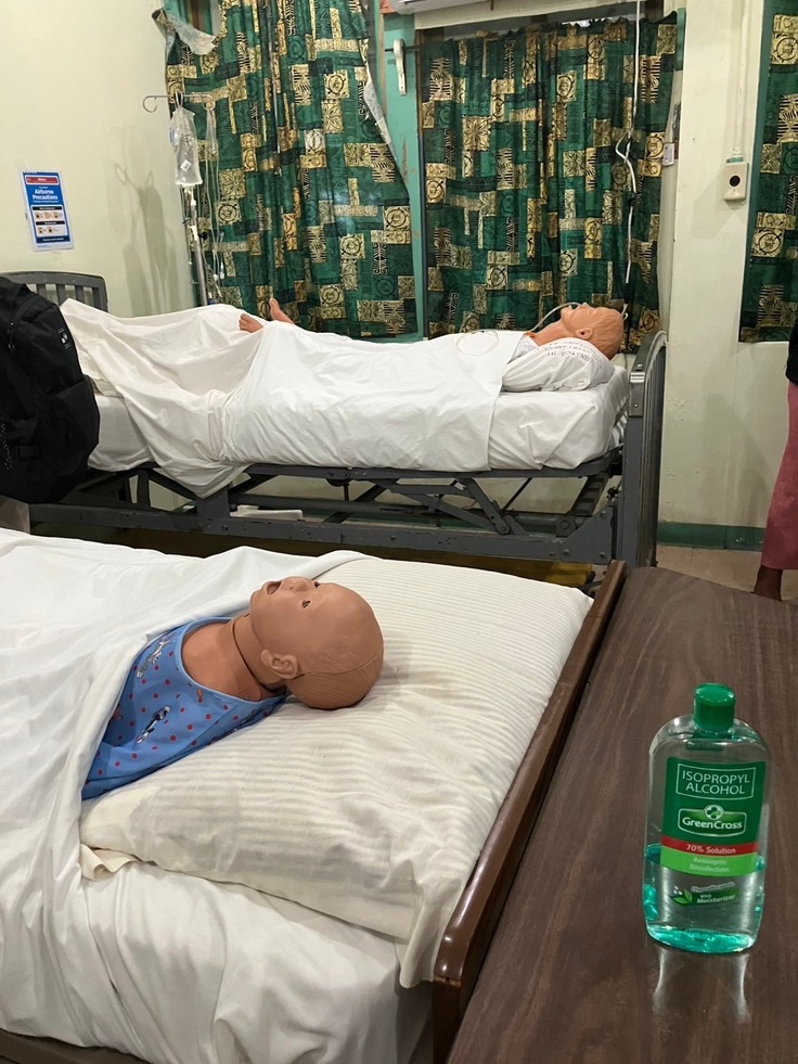 看護学の教室では、模型や貴重な医薬品を使って実習が行われており、医薬品はオーストラリアから輸入されているそうです。