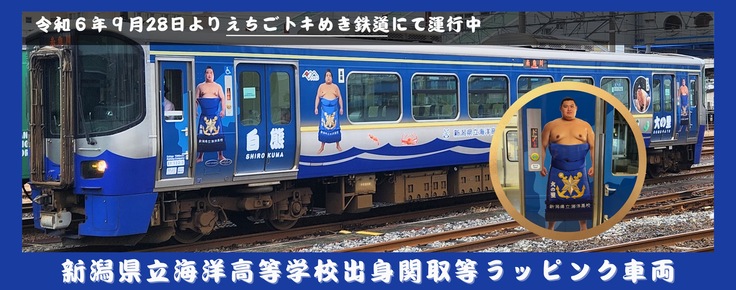鉄道ファンであり、えちごトキめき鉄道による各種企画の虜となった、トリプルコンフィデンス代表取締役の朱孝さんが海洋高校相撲部や出身力士のPR、糸魚川の地域振興につなげて欲しいとの思いから実現したものです。