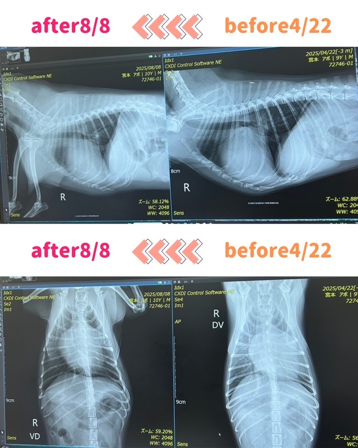 手術前より心臓の高さがなくなり、心臓も小さくなっていました!