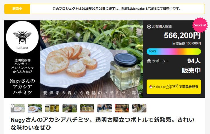 ちなみに、マクアケでは「同じアカシアハチミツの1000g商品というだけでは新商品にならない」としてプロジェクトを立ち上げることができませんでした。