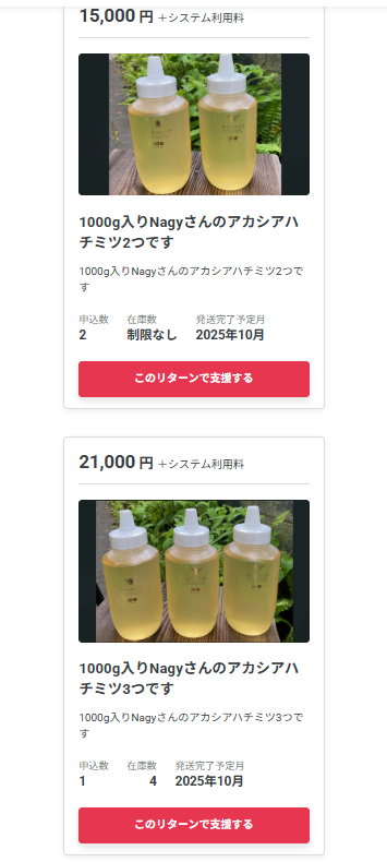 タイトルの通り、3人の方にご支援いただけました。2個セット2つと3個セット1つです。