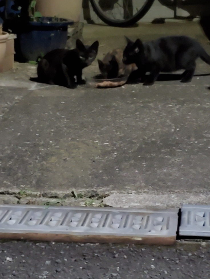 3兄弟 確認出来ました。サビちゃんが すごく小さい(>_<) 捕獲の仕方を 考えています。