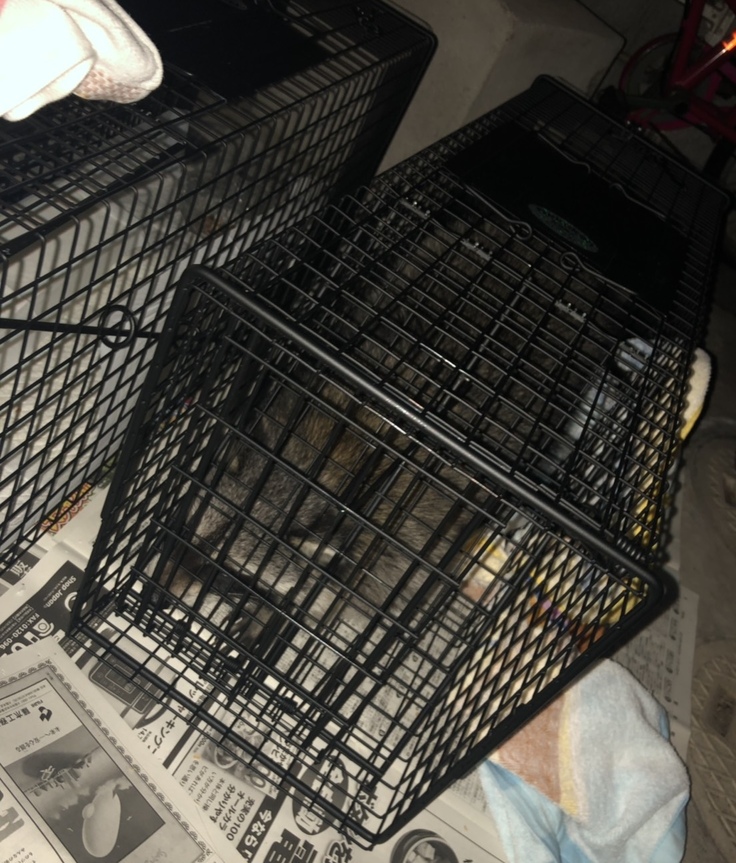 29日祝日 ちびっ子達の捕獲 失敗しました。捕獲器に 野生動物が‥‥。