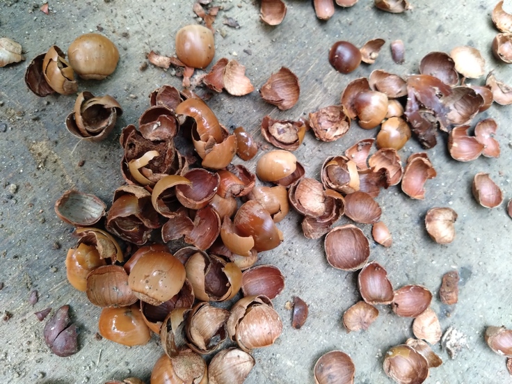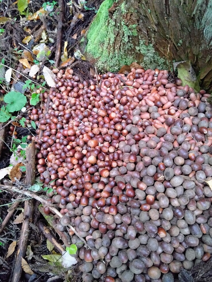 どうかドングリを見つけて食べてくれますようにと祈りながら。