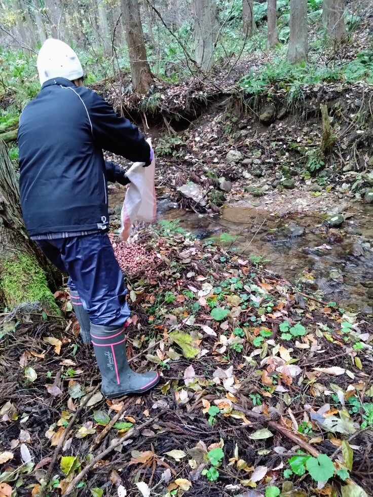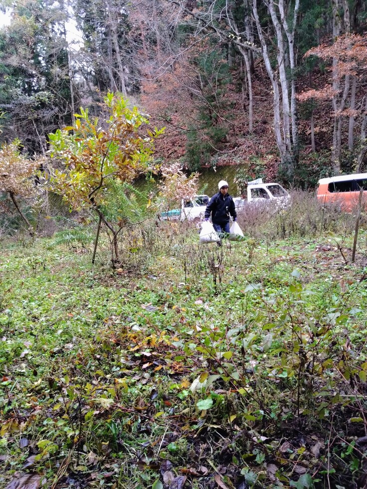 天然の木の根元に撒きます。人に見つからないように食べてね。