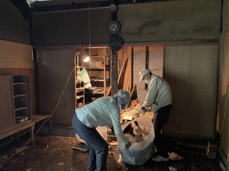 まずは近隣のボラさんに声をかけてゴミの片付けを開始
