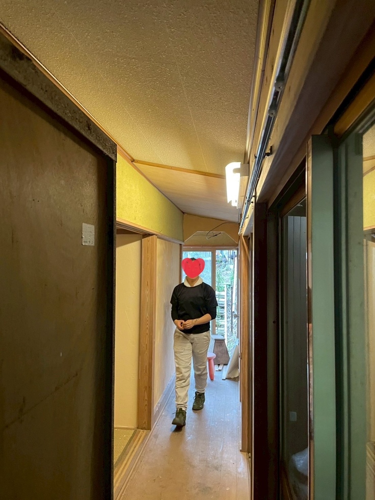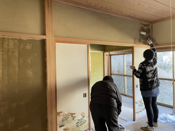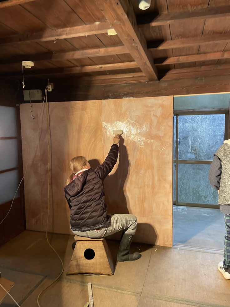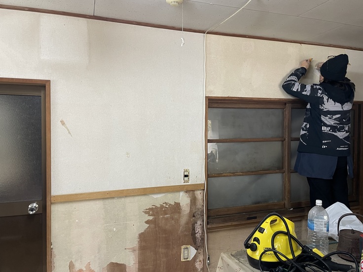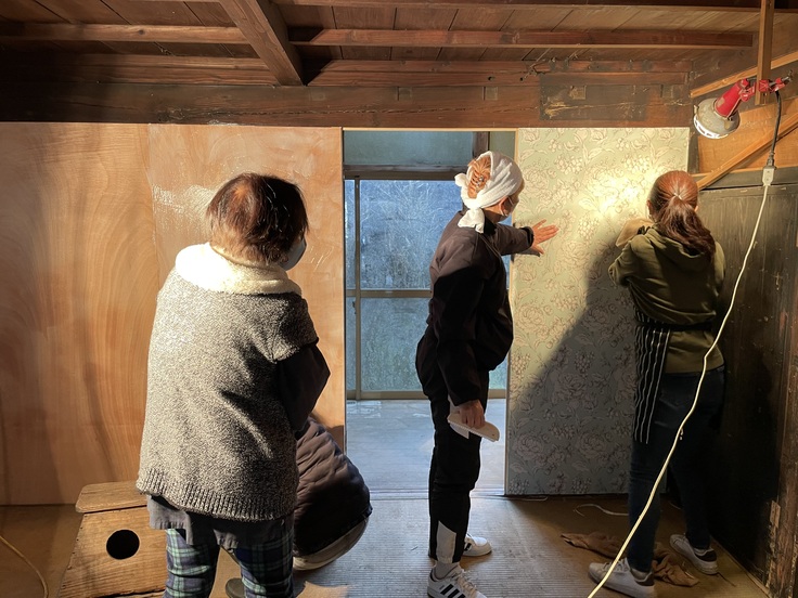 新たな壁を作り(大工さん)壁紙貼り (壁紙もボラさんに頂きました)