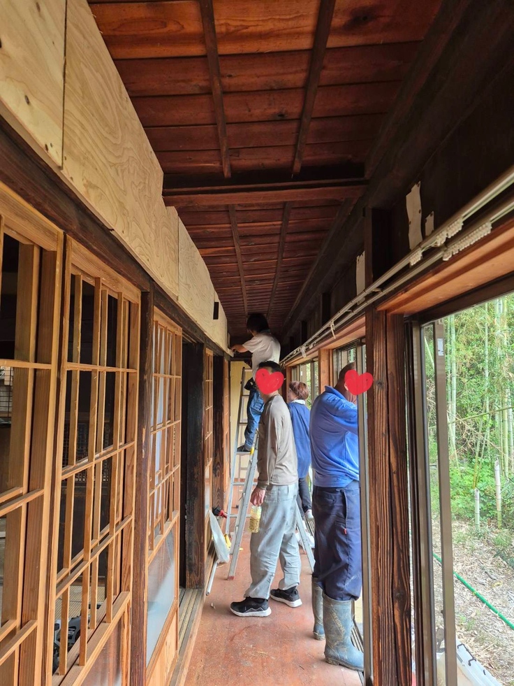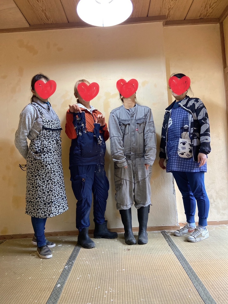 作業し終わった壁の前で記念写真ですヽ(*´v`*)ノ