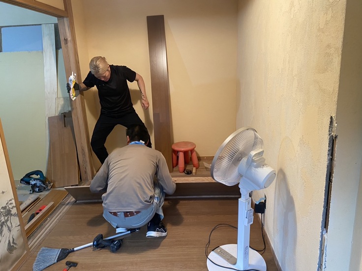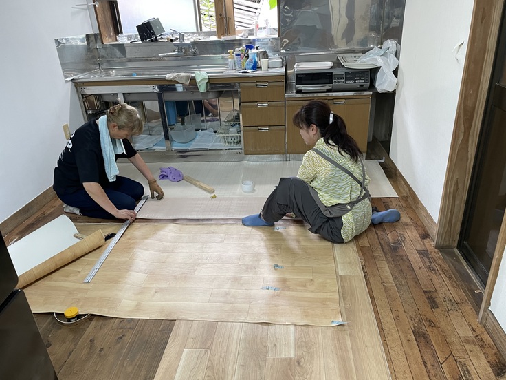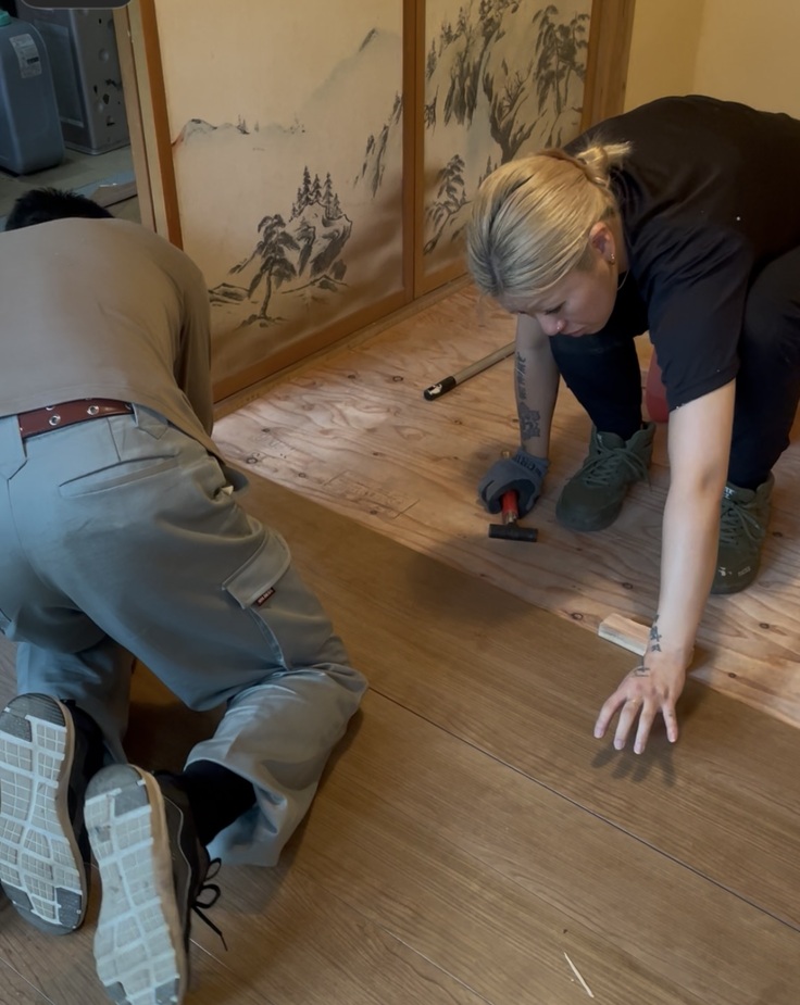 頂き物で床張りを・・・。悩める2人