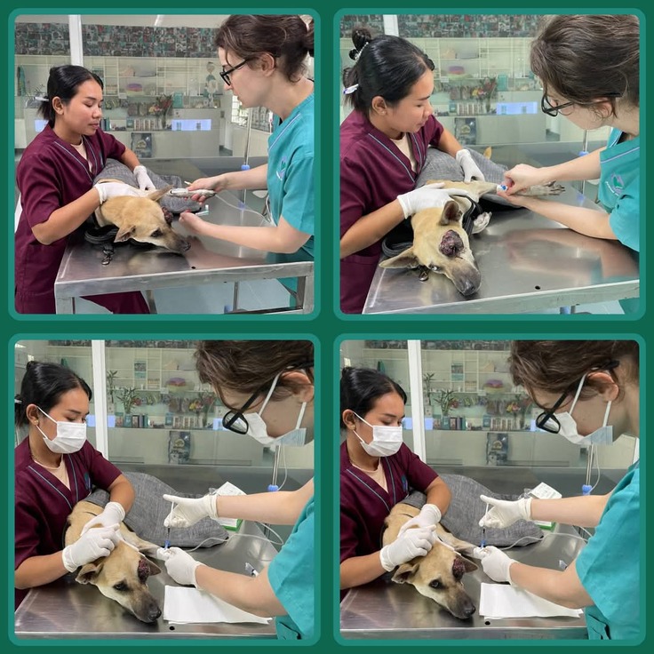 アニマル・ママ・シェムリアップにて、リーフィーの癌の化学療法が開始された。