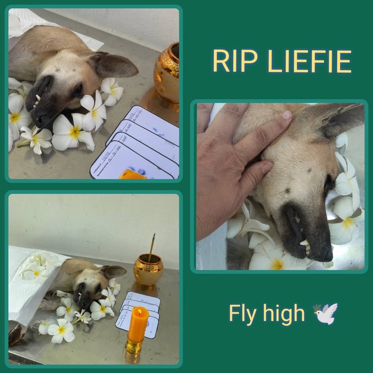 これからは癌もなく、ダニ感染症もなく、十分な食べ物と、寝転んだりはしゃいだりできる緑のたくさんある場所で、元気で過ごしてほしい...... Fly High Liefie.......
