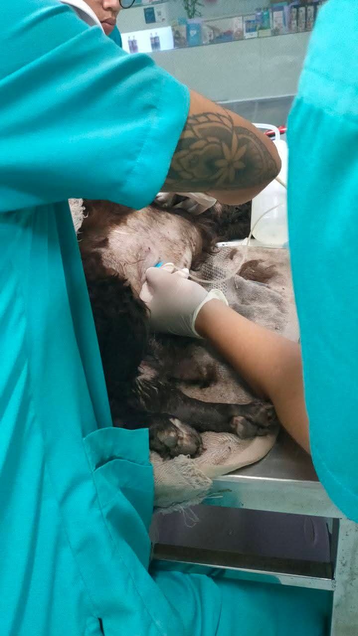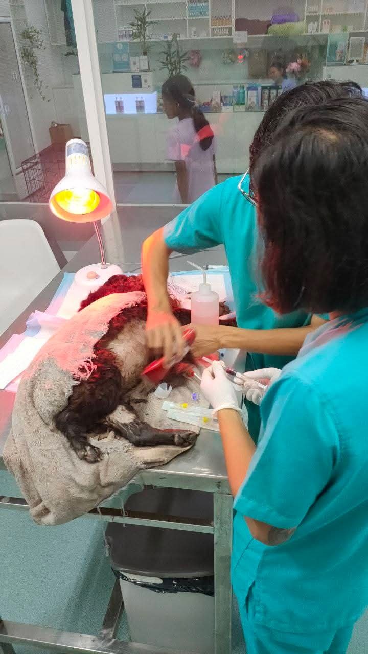 彼女たちは田舎の方に住んでおり、昨日ピンが予断を許さない状況になったのですぐにかけつけてアニマル・ママ・シェムリアップに連れていきました。